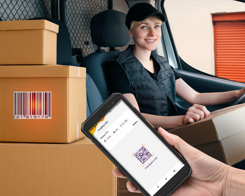 - Сканирование кодов маркировки (КМ) и отправка сведений в информационную систему «Честный ЗНАК» при доставке отслеживаемых товаров.