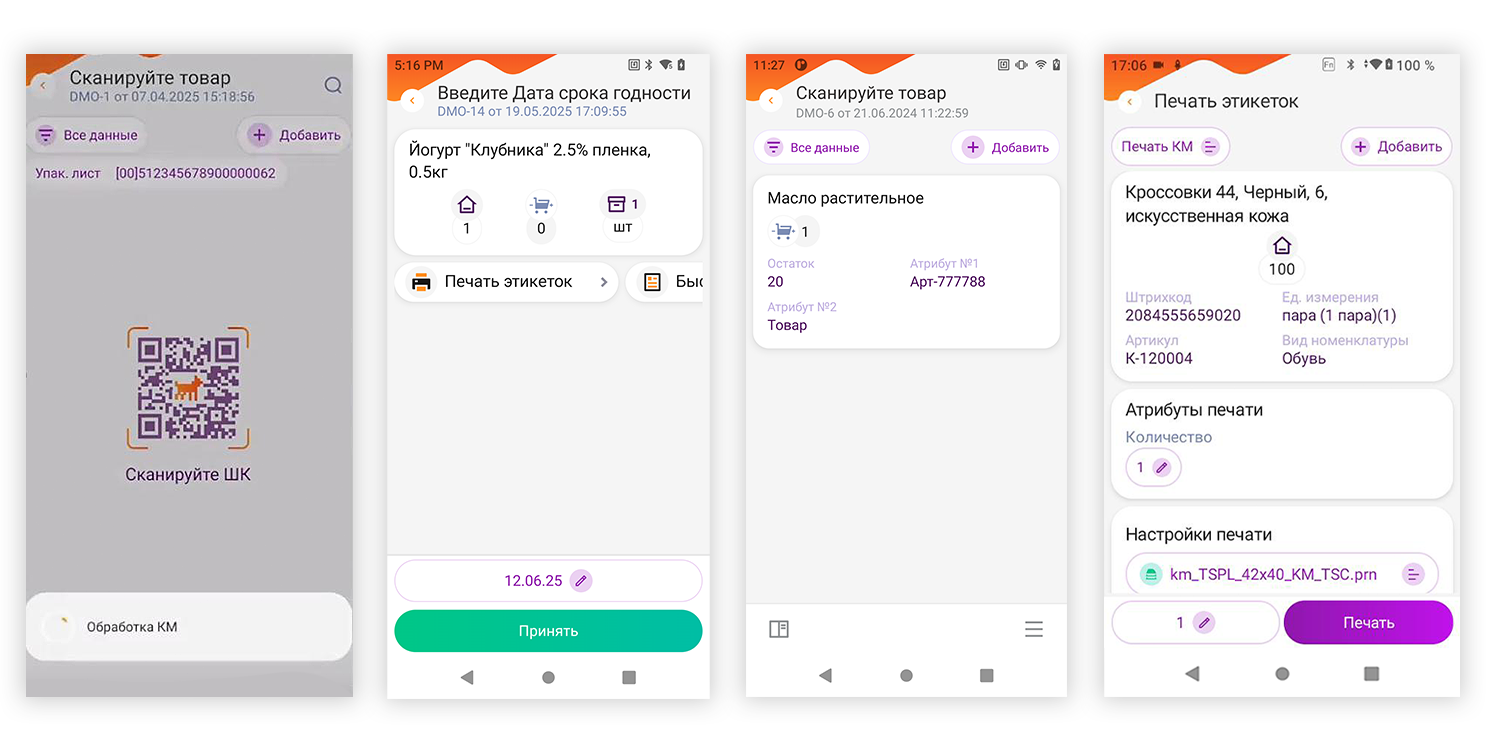 ПО DataMobile — готовое решение для маркировки. Это российский софт, разработанный нашей «Компанией Сканпорт». Программа совместима с ТСД, а также другими мобильными устройствами на ОС Android. Приложение подходит для работы на складах, в торговых залах, на производственных предприятиях, помогая автоматизировать такие бизнес-операции, как приемка и отгрузка партий, проведение инвентаризации, проверка ценников.