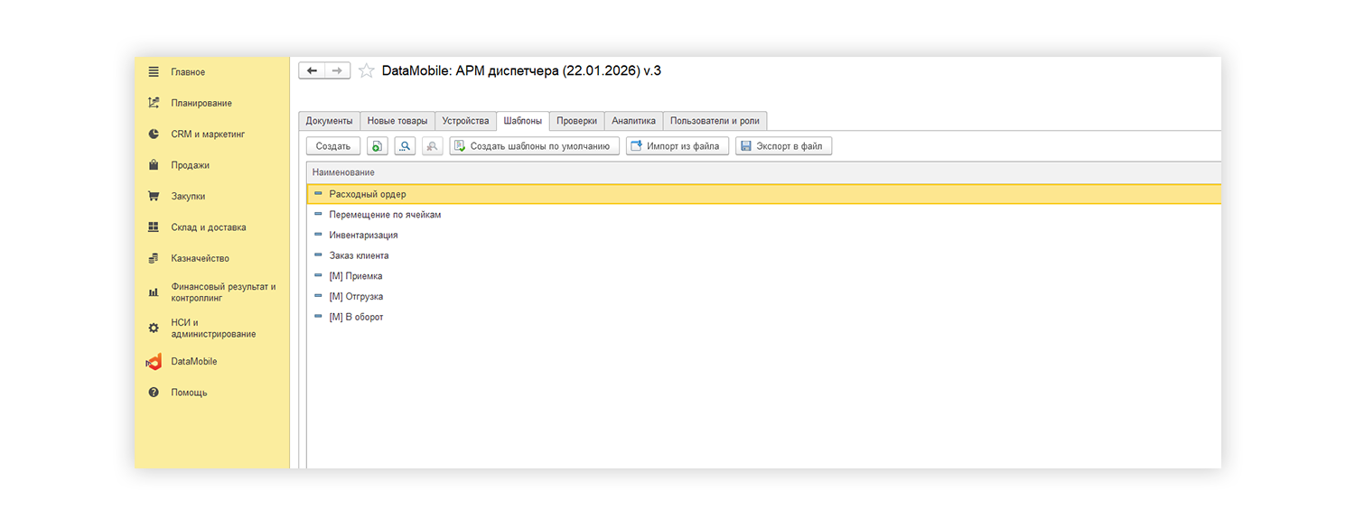 Авторизуйтесь в софте DataMobile и откройте шаблон «Инвентаризация».