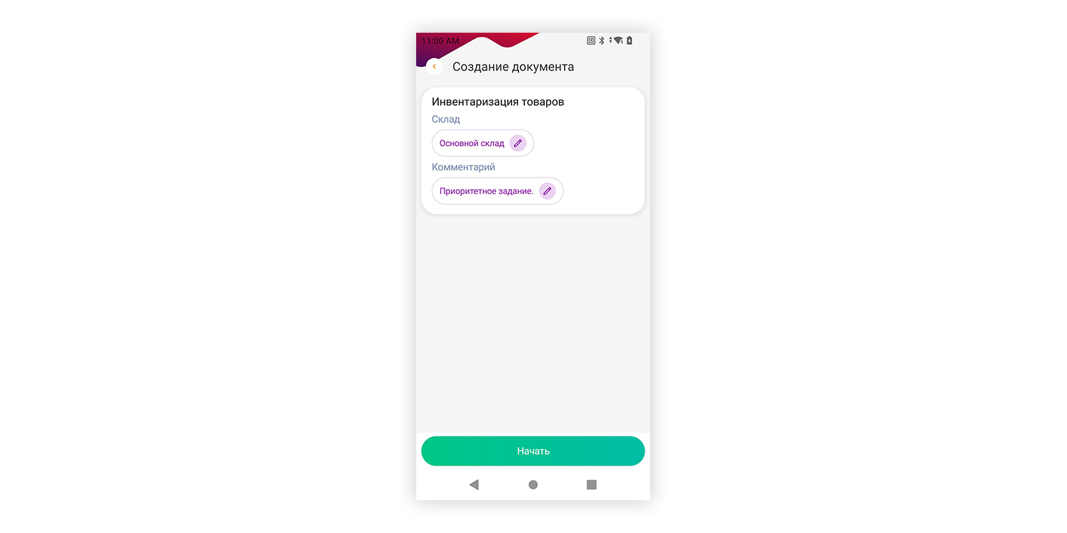 2. Выгрузите из «1С» в приложение задание со списком объектов для учета. Или создайте новый документ на ТСД.