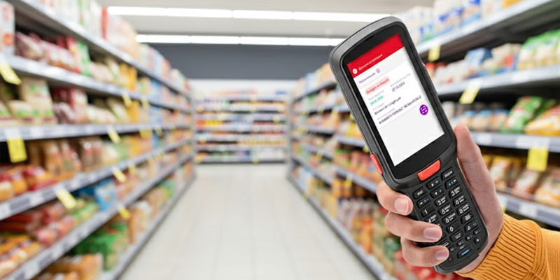 Для автоматизации учета товаров на складе по методу штрихкодирования применяется терминал сбора данных. Устройство имеет встроенный 2D-сканер, сенсорный экран, беспроводные модули (Wi-Fi, Bluetooth, 4G). Работает от аккумулятора, поставляется с предустановленной ОС (как правило, Android).