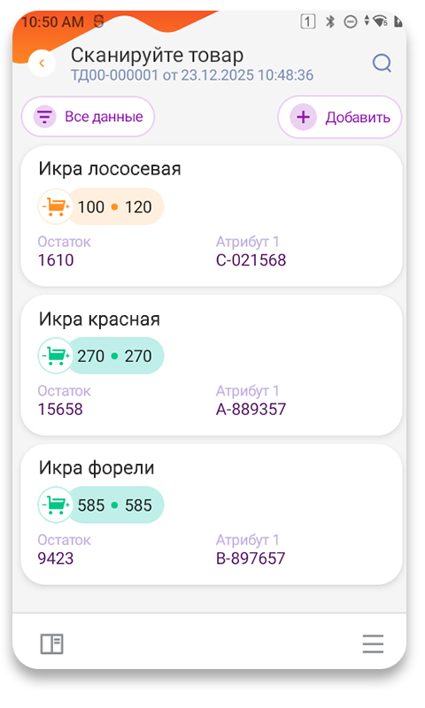 Для оптимизации процесса учета и маркировки красной икры применяется мобильное решение — терминал сбора данных (ТСД) с программным обеспечением DataMobile.